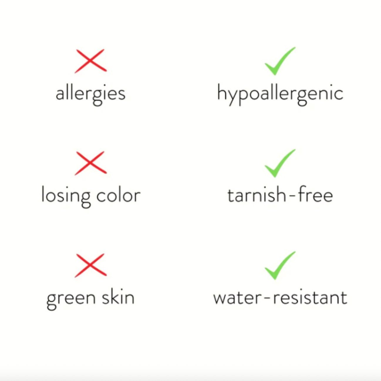 Crafted from waterproof stainless steel, you will never have to worry about your jewellery fading or tarnishing ever again.